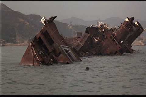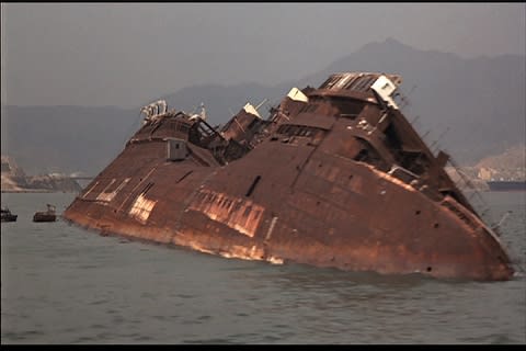 本物です。 映画撮影の翌年、スクラップとして解体されるまであそこに放置されていたんです。火災が起きた時、船の名前はすでにQEではなかったんです。"シー・ワイズ・ユニヴァーシティ"という船名でした。