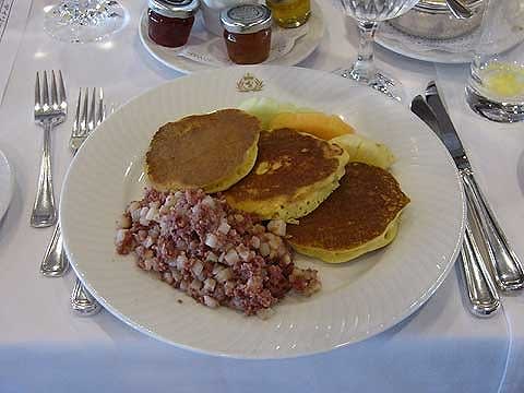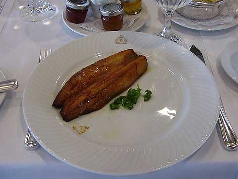 記念すべき6000コメント目、ありがとうございました。 さて、本題ですが... キッパー(kipper)は、みたとおりの魚料理です。主としてニシンを塩漬けにして燻製(くんせい)にしたものですね。イギリスの代表的な朝食メニューです。キュナードはもともとイギリス系ですので、このメニューが朝食に用意されているのです。