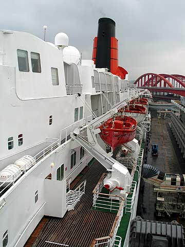 船はとても良く手入れされていました。ただ、客の見えないところでメンテナンスするのではなく、作業そのものもある種のイベントとして位置付けているフシがありましたが…(^^;) キュナードのキャプテンは他社に比べると何かと露出度は高いですね。