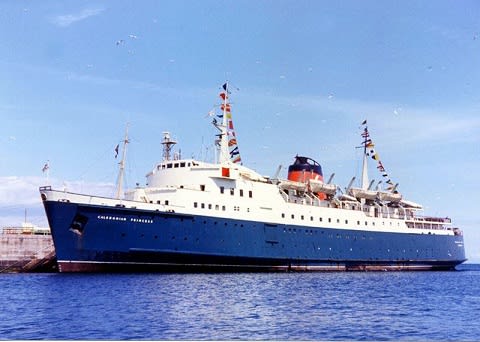 built by William Denny & Brothers Dumbarton, Yard No 1501 Engines by William Denny & Bros,Dumbarton Last Name: CALEDONIAN PRINCESS Port of Registry: Stranraer Propulsion: 2 x steam turbines dr geared to 2 sc shafts 11500shp 19 knots Launched: Wednesday, 05 April 1961 Built: 1961 Ship Type: Passenger Car Ferry Ship's Role: Commercial Static Enterprise Tonnage: 3630 grt | 1306 nrt | 620 dwt Length: 353 feet 0 Breadth: 57 feet 2 Draught: 12 feet 0 Owner History: Caledonian Steam Packet (Irish Services) Stranraer Status: Static Role - 2005