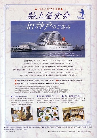 アスカクラブでも一応やっているのですが、それほど頻繁には行われていない会員向けの船上イベントですが、ドルフィンズクラブは結構マメにご案内があります。
