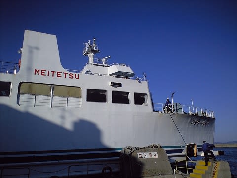 そりゃ何がいいかって、空が抜けるように青いですよ、見てるだけで食べ物の旨さが伝わってきますよ、多分よく分からないけどそんな良さではないですかね。 P.S.名鉄フェリーは、鉄道と比べるとイマイチ個性がないような気がするのが残念です。