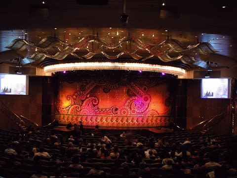 ショーに先立ってクルーズディレクターのご挨拶があります。 結構若目に見える男性でした。あとで意外な一面を見せられることになろうとはこの時点では想像もしていませんでしたが...(^^;)