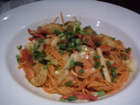 パスタ。これはアメリカンなパスタでした。(つまり水っぽい...(^^;))