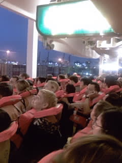 一泊以上船内で過ごす場合には義務付けられている避難訓練です。 行われるタイミングは船によって違いますが、今回は出航前でした。