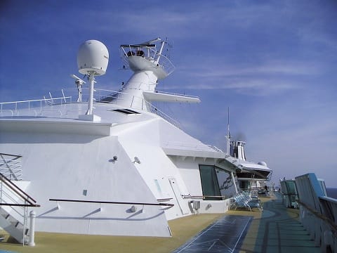すっかりRCIの定番になったロッククライミングウォール。 勿論、この船にもあります。船の最後尾。