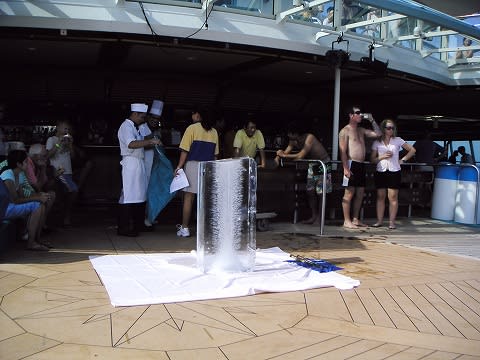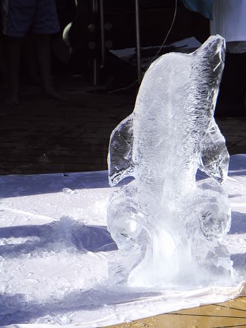 午後のメーンイベント。 プールサイドで氷の彫刻が始まりました。 これも定番イベントですね...
