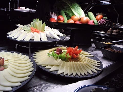 ビュッフェって、大好きなんです。上のチーズの盛り方みたいに、目でも楽しめて、わくわくする。 もちろん、船旅の醍醐味は、メインダイニングのセッティングだとおもいますけど。