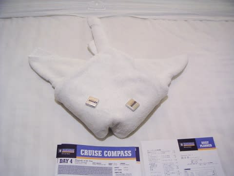 狂乱のカウントダウンから部屋に帰ってみると、今日は"エイ"のタオルアートでした。