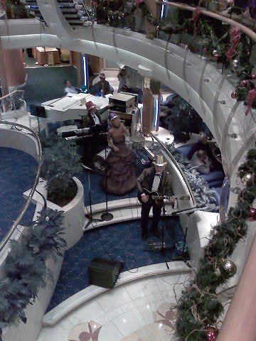 メイン会場はアトリウム。 まずは静かにバイオリンの調べが... そしてバンド演奏に変わります。