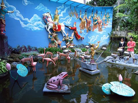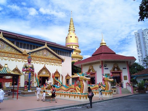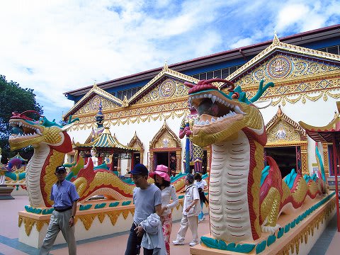 マレーシア唯一のビルマ寺院。ビルマ式寺院の特徴である黄金のパゴダをもち、お堂とお堂をつなぐ通路には、釈迦の一生を描いた絵がかかげられています。 入場料は無料