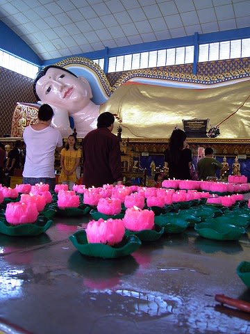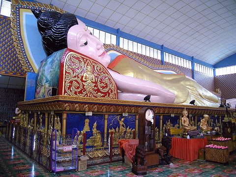 全長33mの黄金の寝釈迦仏があるタイ式寺院。世界で3番目に大きい寝釈迦仏と言われています。入場料はここも無料。