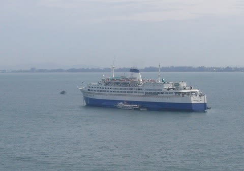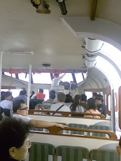 渡船は船の中では一番大きいテンダーでした。屋根にも上がれたのですが、この時はすでに上は一杯でした...残念...