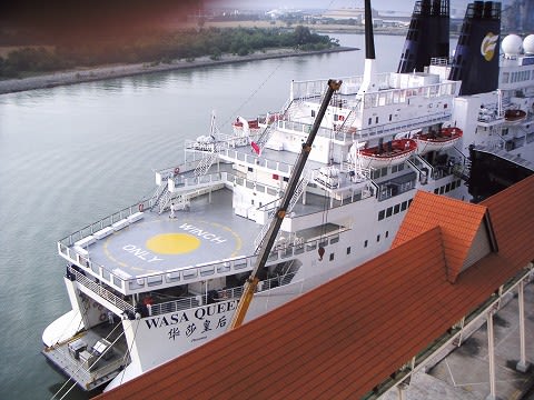 最近、ここでのワンナイトクルーズを行っている"WASA Queen"が停泊していました。