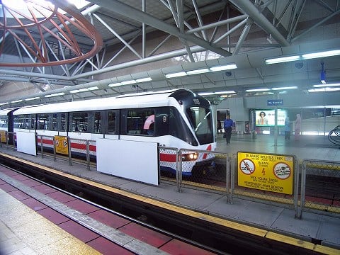 つづいてLRTに乗車。 ペトロナスツインタワーを目指します。 ココ、クアラルンプールでのLRTは地下鉄的な扱い。 車両も大きめですし、スピードもなかなか。専用軌道を快適に走ります。