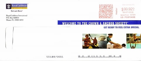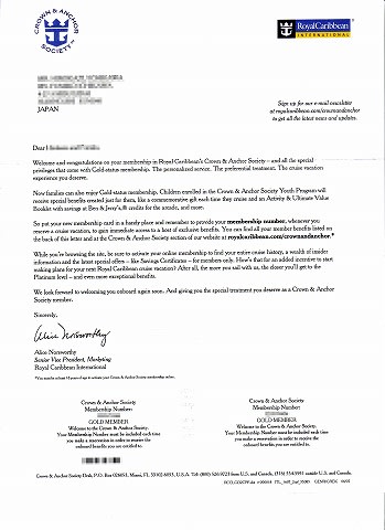 って何??? って言う方も多いと思いますが、用は郵船クルーズで言えば"ASUKAクラブ"に相当する仕組みです。つまりはひらたくいえばリピーターズクラブですね。 RCIの場合は基本は乗船中の手続きになります。 乗船中に所定の用紙に記入して、レセプション横の専用ボックスに投函しておけば、後日、会員証が送られてきます。 RCIの封筒