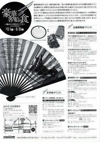 戦前・戦中・戦後の復興期において、日本郵船、帝国ホテル、ホテルニューグランドの3者が「日本の西洋化」の原動力であったことは否定の余地は無い。とりわけ日本郵船の客船は世界中を駆け巡り、最先端を走っていたことは想像に難くない。そんな客船の食にスポットを当てた企画展。