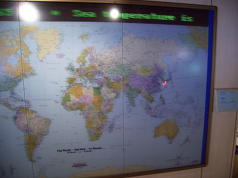 通常なら現在地を示すくらいなんですが...このボードは、右にあるコントローラーで、これから先の進路や、他のクルーズの旅程などを表示することができるようになっています。