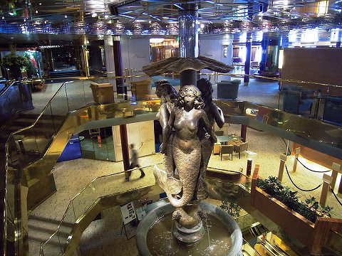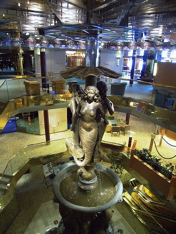 HALの船は、このアトリウムに巨大なモニュメントが必ず置かれています。 この船の場合は人魚でしょうか...3層をぶち抜く巨大なものです。
