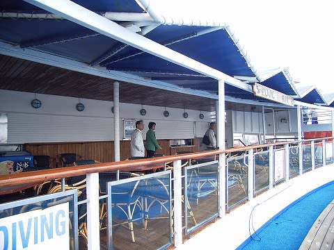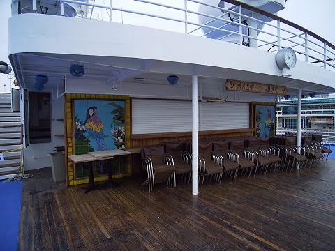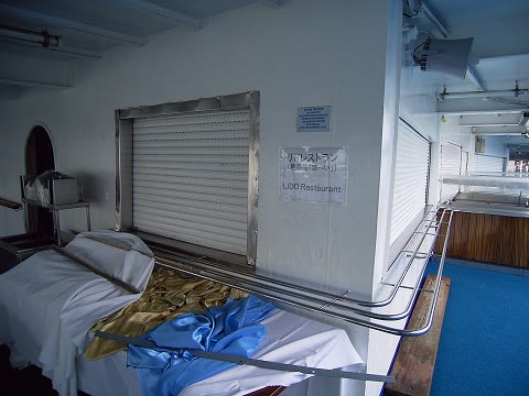 この船の姉妹船で当時は"SUN VIKING"。現在は"LONG JIE"という船がシンガポールベースで運航してます(密かに乗船を狙っているのですが...)。香港で"OMAR III"という名前で運航していた船ですが、この船が綺麗なんですよ。よくメンテナンスされているというか... それが頭にあるので、期待度が高かったんだと思います。 渡り歩いてきた経歴の差なんでしょうか... あと、この後から出てきますが、ピースボートの要請から来る改装がどうもちぐはぐな印象が...トパーズはこのあたり、一番最初の公開の時でも綺麗にまとまってたと思うんですよね。今回は言葉は悪いんですが、"やっつけ仕事"の感が拭えないんです。