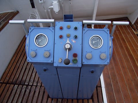 ここだけウッドデッキになってます。 ブリッジウィングの機器
