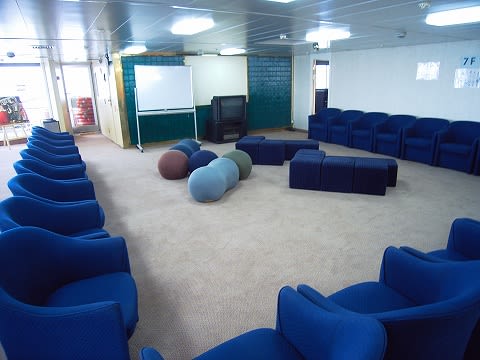 「日本文化を紹介する」みたいなイベントでお茶会とかするんでしょうねぇ...ピースボートですから。 日本船には珍しくない施設ですけど、チャーター船に作っちゃうところがなんともすごいです...このあと、もっと驚きの施設が登場しますって書きたいところですが、他のY!ブログではとうに紹介されちゃってますね...(^^;) そう、大浴場もあったりするんです、この船。