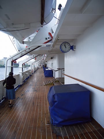 この自販機は価格がLED表示なのですぐに変更できるんでしょうけど、そうではない固定表示の自販機も結構ありました。外洋に出ても同じ価格なんでしょうか??? プロムナード。ウッドデッキです。