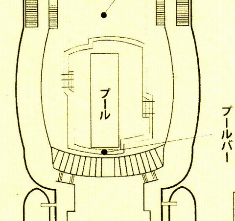 この船、面白い仕掛けがあります。 上層階は8 DECKで、プールがあるわけですが、