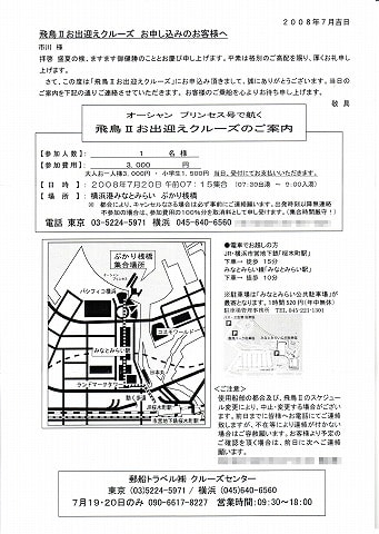 ※今回はカラーですが、相変わらず日付は直っていませんでした。 同封されていた乗船者への案内。