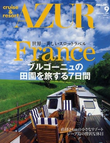 定価 1,200円(税込) 発売 2008年7月22日(火) 出版社名 東京ニュース通信社 (雑誌コード:07658) 発行間隔 隔月刊 発売日 奇数月22日発売 今号の主な内容 ・ブルゴーニュの田園を旅する7日間 ・旅する人 ・クルーズグラフィック ・ワールドプレミアシップ ・週末、海の見える場所へ ・AZUR-STYLE