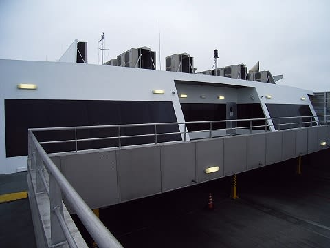 あと、エクゼクティブクラスのキャビンがあるんですが、エコノミーのチケットでは入れないので写真は撮れませんでした。エクゼクティブクラスは上の階になってます。 唯一、外に出られる場所。船尾のバルコニーです。