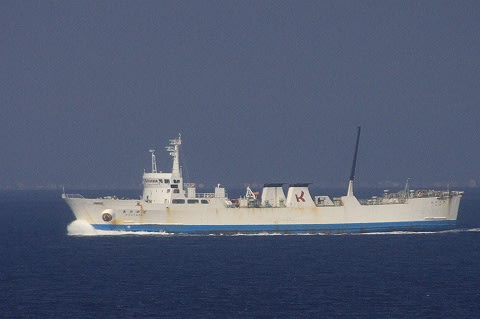往来の激しい津軽海峡です。 船上からウォッチング。 10分ほど先行して出港した"ばにあ"を途中でぶち抜きます。