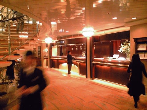 ショーは... う〜ん、難しいところですね。 シアターの天井が低いので出来ることが限られちゃってるのが痛いです。 アクロバットダンサーの方々もリフトの時なんかにだいぶ天井を気にしてましたからね。 もう少しやりようを考えて欲しいかな... 設備的に外国船に対抗できる唯一の日本船ですから。頑張って欲しいです。 パームコートへ移動。