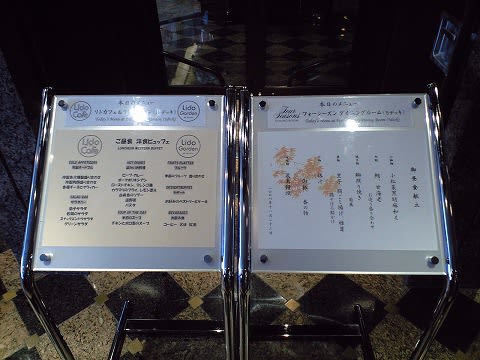 フォーシーズンズの前には、リドカフェのメニューと併記された看板が出ます。