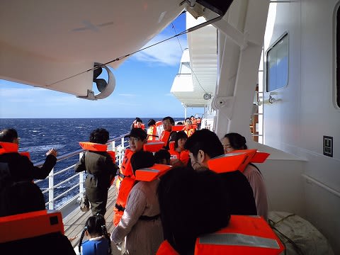 こたけさん。 >。”私は○回目のクルーズなのよ!” というよりは、"何回目の飛鳥"とか、"飛鳥に何泊目"って言う感じですかね...(^^;) レストランとかで話さなければそういう話題も出ません。 飛鳥の場合は日本船にしか乗ったことがない方が多いので、外国船の話をすると結構乗ってきてくれますよ。 >避難訓練はボートに乗ったりしました? いえいえ、そこまでするのは小型船ですかね.... このクラスの船になると無理だと思います。 訓練も航行中に行いますから。今回は風が強くて、この訓練のために方向違いなのにわざわざ風下に船首を向けたほどですから。