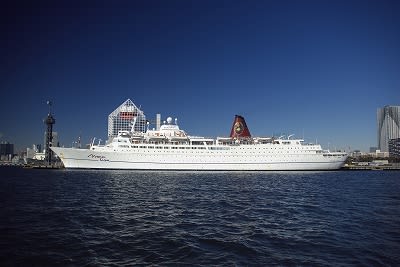 私は、一昨日、横浜で対面してきました。 また、船首で旧船名の名残をにらめっこしてみましたが Sea Princess の rince 部分が僅かに読み取れるような気がしました。 私の記事も、トラックバックさせて頂きますね。