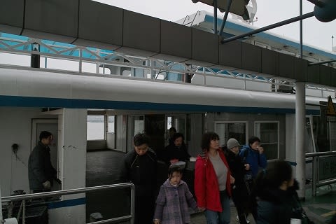 とぼとぼと南へ向かって歩いて、渡船に乗り、対岸へ向かいます。 渡し賃は2元。入り口脇の窓口で、トークンを買い、改札にトークンを通して乗船します。 なかなか快適でしたよ。 浦東側の桟橋です。