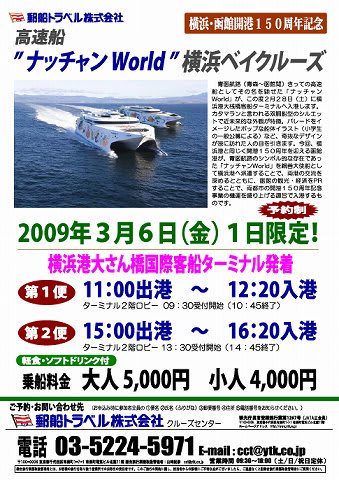 横浜開港150周年記念 高速船ナッチャンWorld 横浜ベイクルーズ 続報