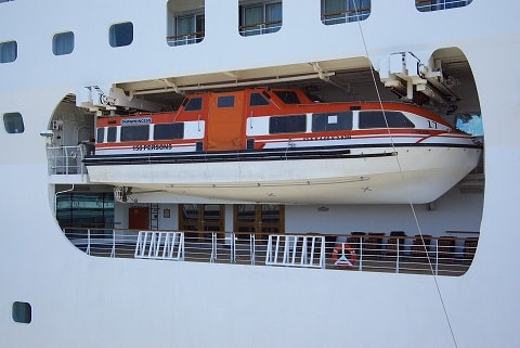プロムナードデッキなんですが、テンダーボートが吊り下げられてる高さが低いと思いませんか?