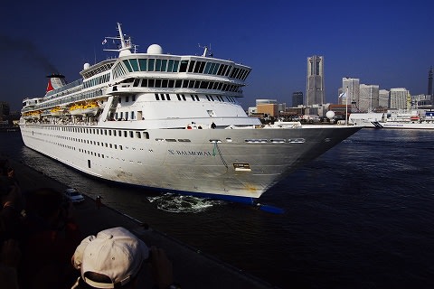 オーシャンターミナルを出航していく"Crown Odyssey"