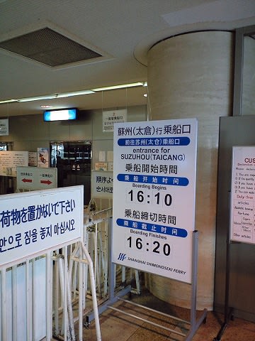 これで勘違いしてしまったのですが、蘇州へ行くのは"はまゆう"じゃないんですよね... 実は桟橋にはもう一隻フェリーが停泊していて、それが蘇州へ行く"ゆうとぴあ2"だったようです。 速報版では頓珍漢なことを書いてしまいました... 蘇州行きのカウンターです。