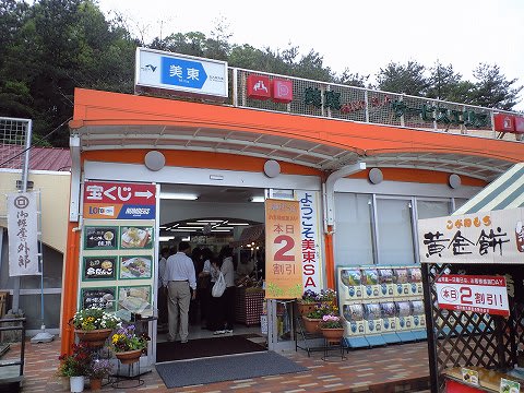 この日は予定どおり。 天気は生憎の曇り空。というよりは今にも泣き出しそうなくらい... もともと下関へ行こうと思ったのは水族館へ行きたかったんですよね。 ところが、この日はなんと、市内一円で"しものせき海峡まつり"が行われるとかで、どうもものすごい混雑が予想されていたらしい...義父母にさんざん脅かされたのですが、かといって他に代替案も浮かばず...予定通りでかけました。 まずは出だし、中国道の美東SAに立ち寄ります。