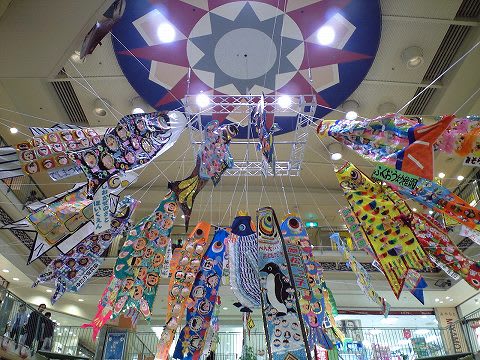 内緒さん この鯉のぼり、市内のどこかの幼稚園児が作ったらしいです。 時代を反映しているんでしょうね...