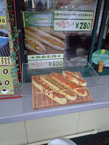 この日はなんと、SAの全商品が20%オフなんだそうで... 帰りにも絶対寄ろうと連れ合いさんと合意...(^^;) 美東SAの名物、ジャーマンドックです。