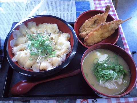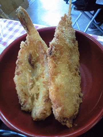 いやぁ〜、ふくって、こういう食べ方もあるんですね... 東京じゃ考えられない... どんぶりご飯の上にふく刺し、ふく皮を盛り合わせてポン酢がかけてあります。 この味加減、歯ごたえの絶妙なこと!! これはうまい!! 単品なら880円だそうです。 そしてから揚げとフライ