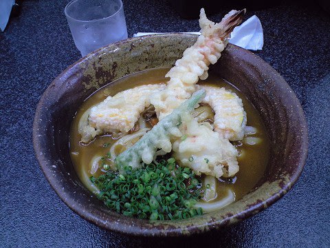 ここはカレーうどんで有名なお店です。 実はこのお店、高松の"夜うどん"という習慣を象徴するようなお店で、なんと開店が夜8時なんです。そういうわけで、この時間までぶらぶらと時間をつぶしていたわけで...(^^;) うどんファン御用達の一杯"カレーうどん"は、ほんのりとした甘さを感じつつも、後味はカレーらしくピリっとしたもの。のど越し抜群の麺とあいまって食が進みます。