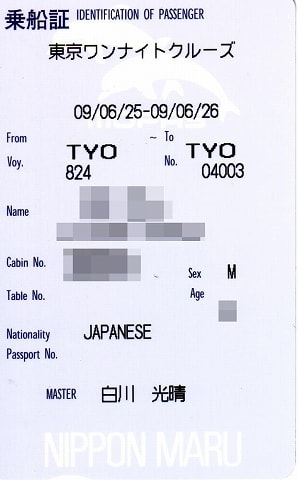 2件いよいよ...ですね。 乗船証...ほんとうに寂しいデザインです。 何時からでしょうか、私が乗船した頃は黄色やピンクのぼかしだったり もうちょっと派手でしたが。