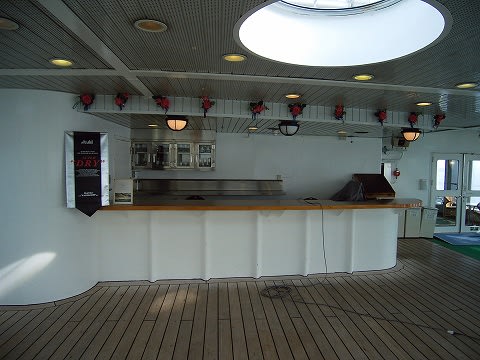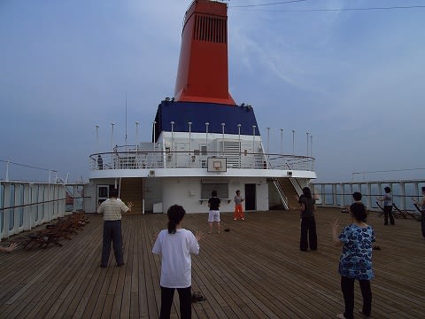 ホットドリンクはミッドシップバーのカウンターからサーブされます。 カウンターから席まではセルフです。 なんかちょっと軽く食べるものが欲しいところですね。 デニッシュとか... サンドイッチとか... フルーツとか... このあたりも飛鳥とは差があります... 朝の唯一のイベント。おはよう体操。