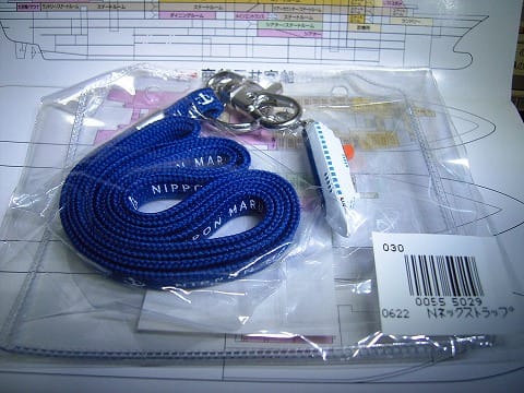 乗船証を入れるカードホルダーが付いたネックストラップ。 長期クルーズの必需品ですが、このワンナイトでは必要なかったですね...(^^;) 一番高くて、\900- ぷるぷるにっぽん丸