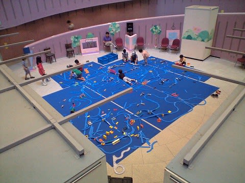 まず入り口のスペースで、プラレールの"遊び場"が...